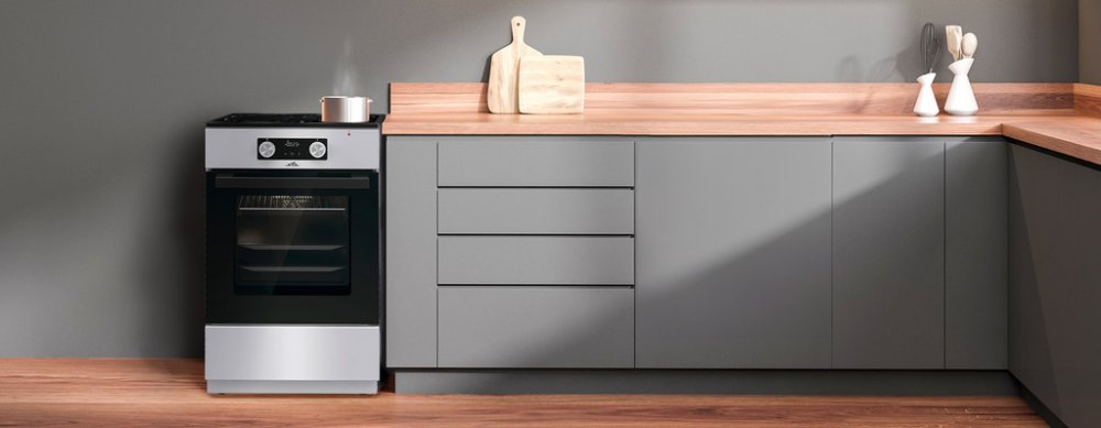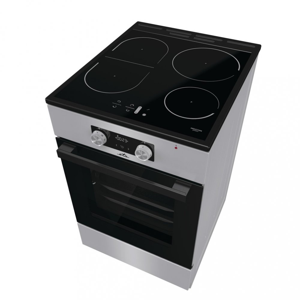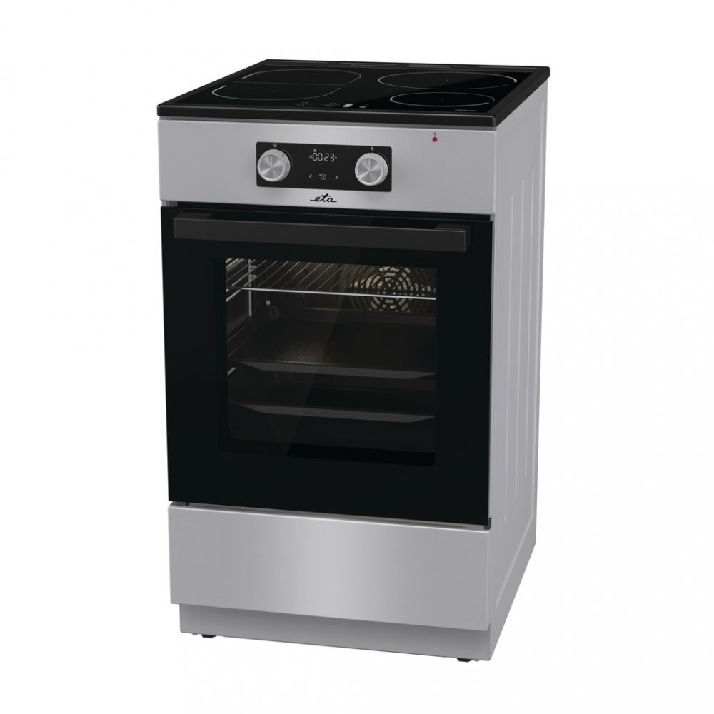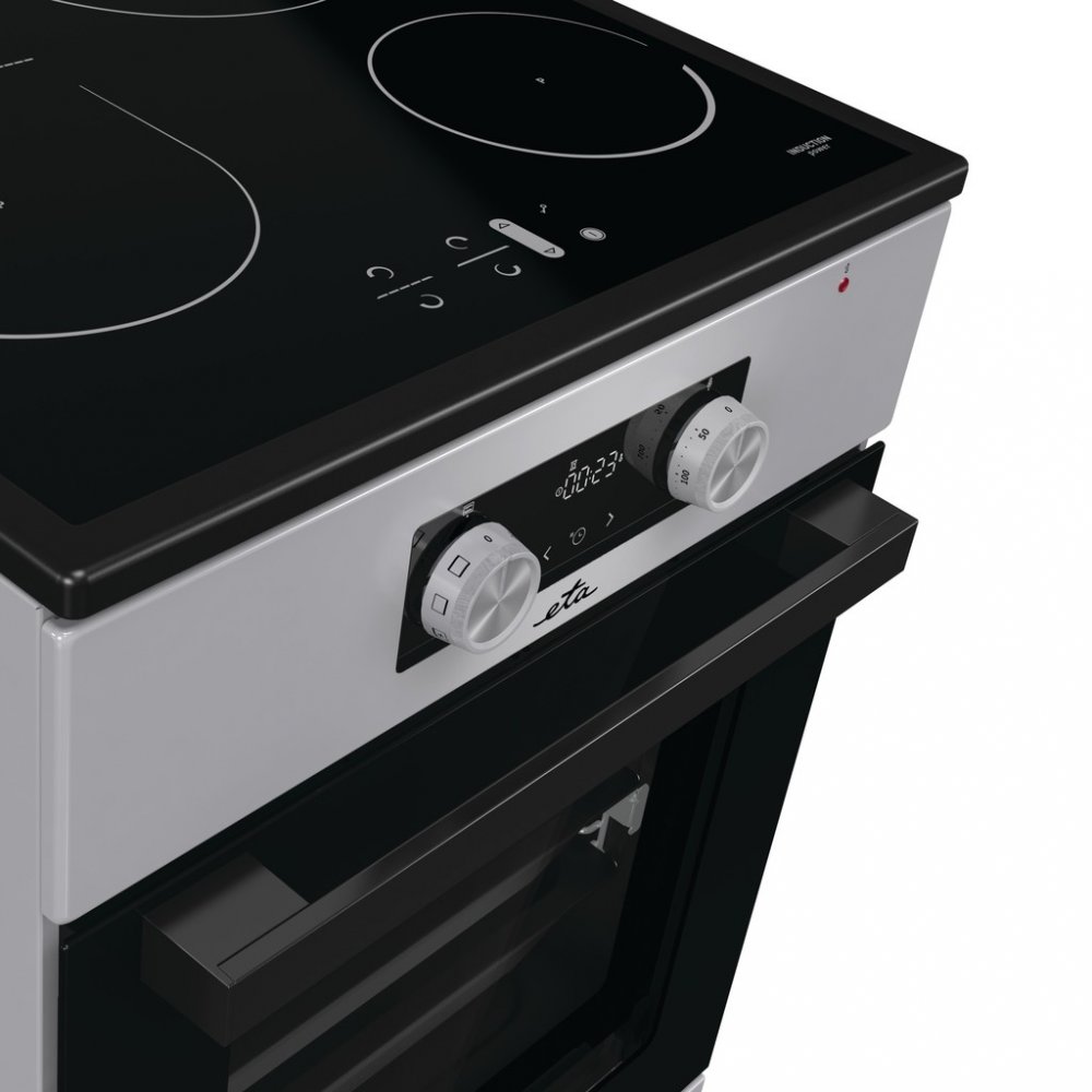 Elektrický sporák ETA s indukční varnou deskou a 9 funkcemi. Objem trouby 70 l, LED displej, teleskopický výsuv, funkce Activapor