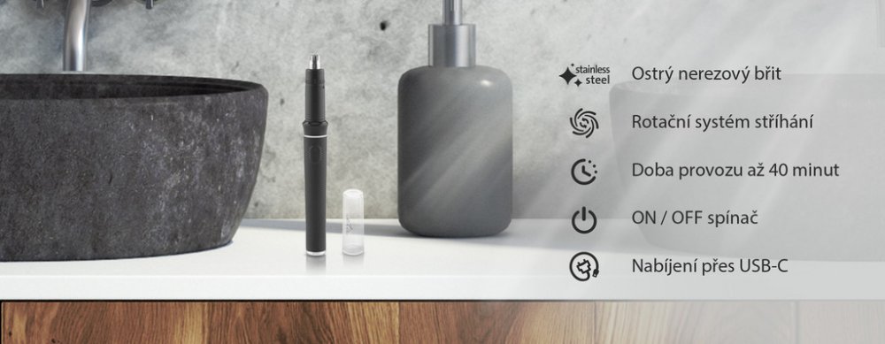 - Nástavec na odstranění nechtěných chloupků z nosu a uší
