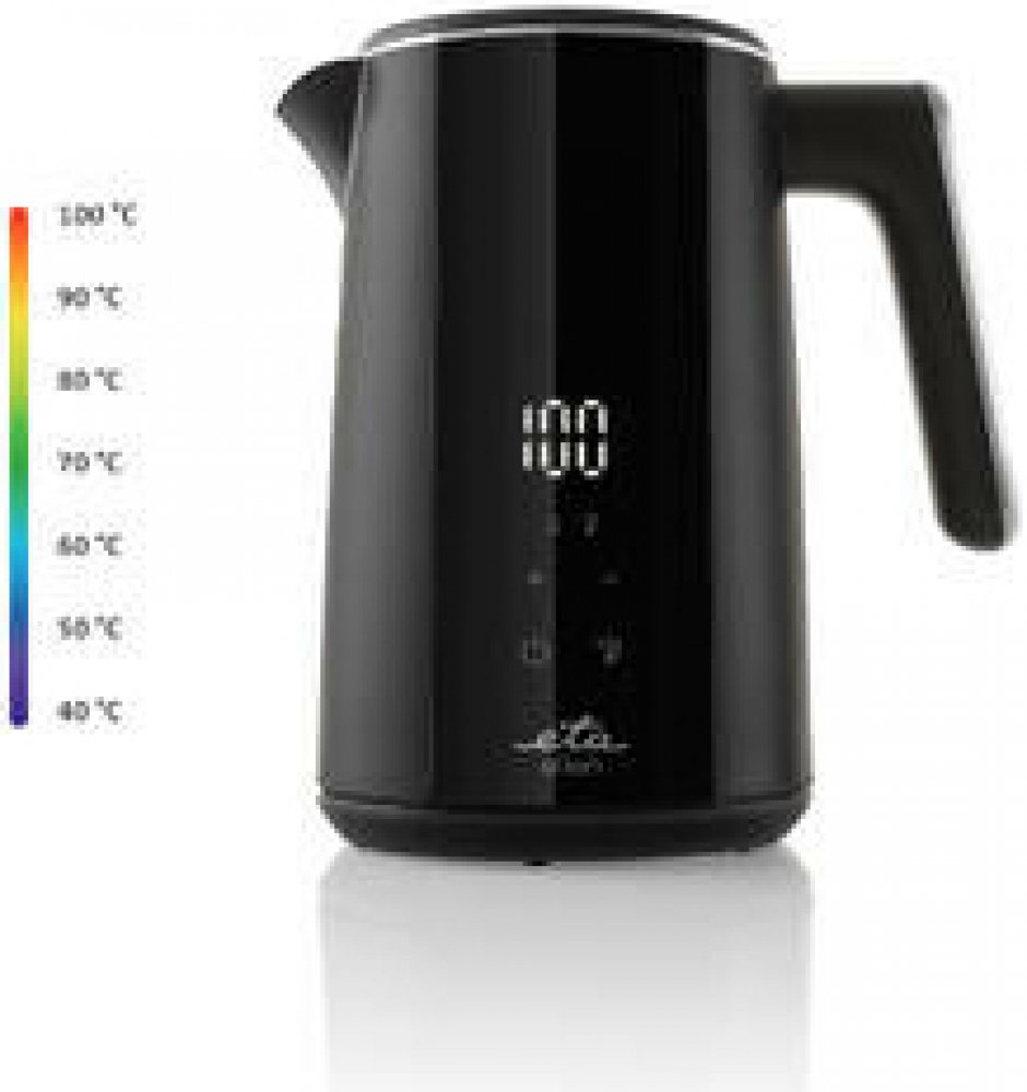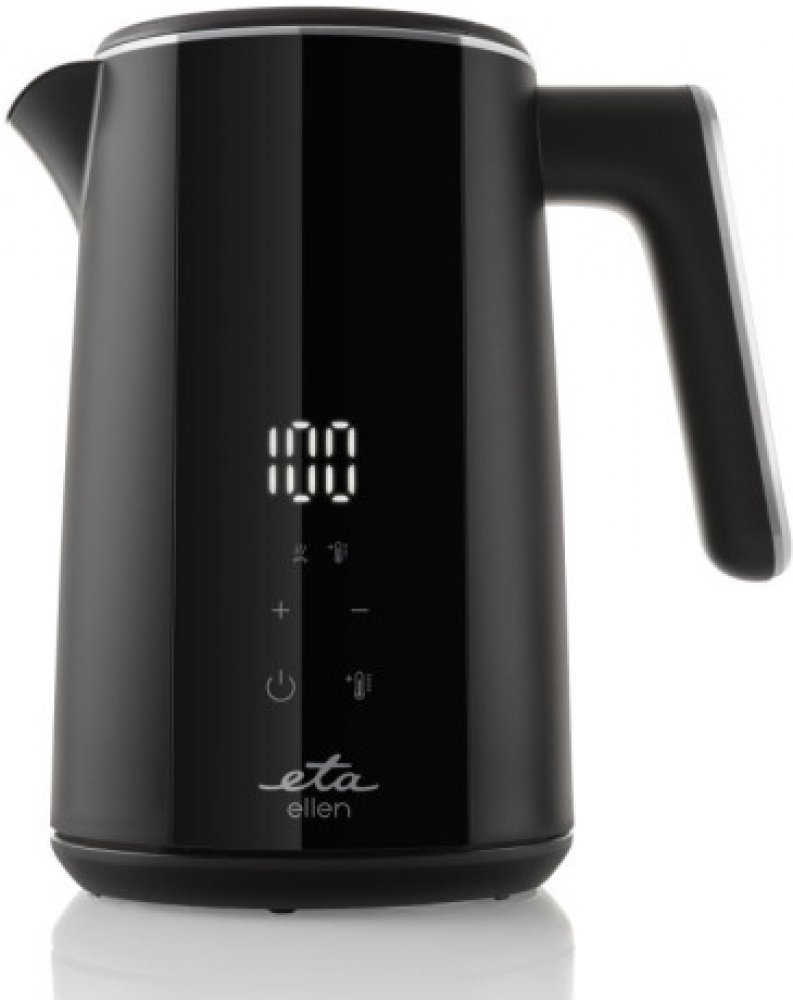 rychlovarná konvice • příkon 1 850–2 200 W • objem 1,5 l • 6 úrovní teploty od 40 do 100 °C • LED displej • funkce KEEP WARM • funkce paměti • funkce automatického vypnutí • světelná a zvuková signalizace • dvouplášťové provedení • vnitřní vodoznak • otevírání víka stisknutím tlačítka • bezpečnostní pojistka • prostor pro navinutí napájecího kabelu v podstavci • středový konektor