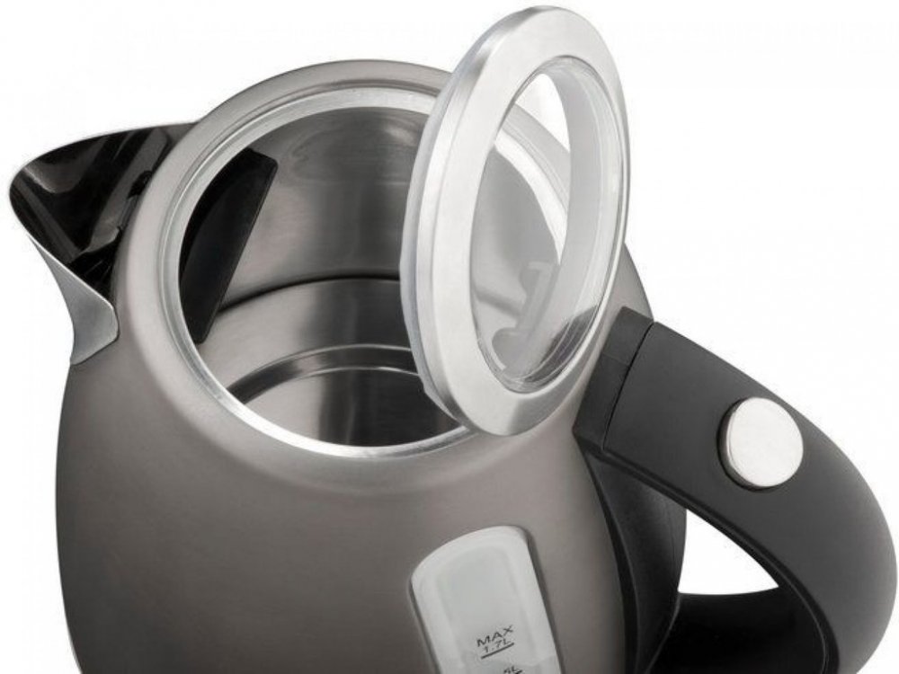 Spolehlivá šedá varná konvice s kvalitním středovým kontaktem uvaří až 1,7 l vody. Oceníte odnímatelný filtr proti vodnímu kameni i bezpečnostní výklopné víko.