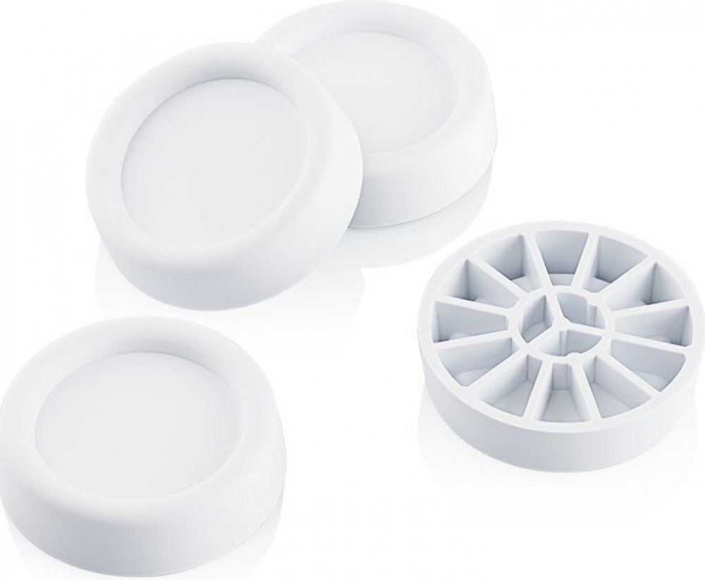 Instalace antivibračních podložek je více než jednoduchá. Stačí spotřebič nadzvednout a podložky zasunout na místo. Antivibrační podložky jsou použitelné s nožičkami do maximálního průměru 4,6 cm a v balení najdete 4 ks.
