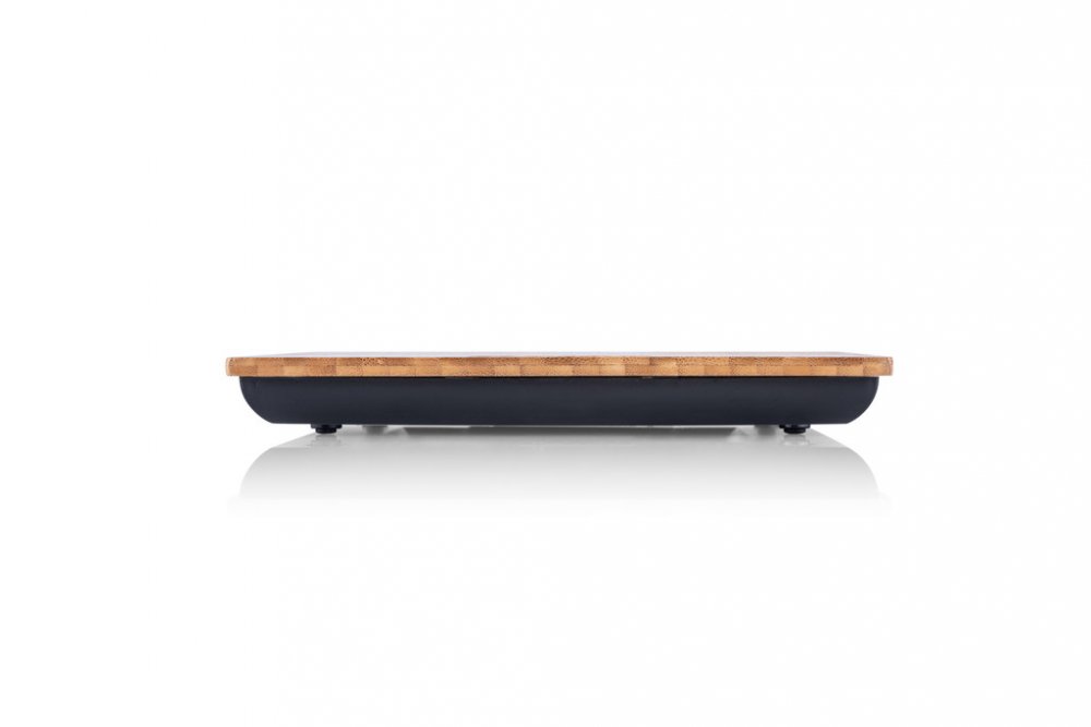 Digitální kuchyňská váha s bambusovou plochou pro vážení s přesností na 1 g i měření objemu tekutin