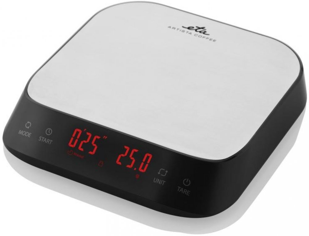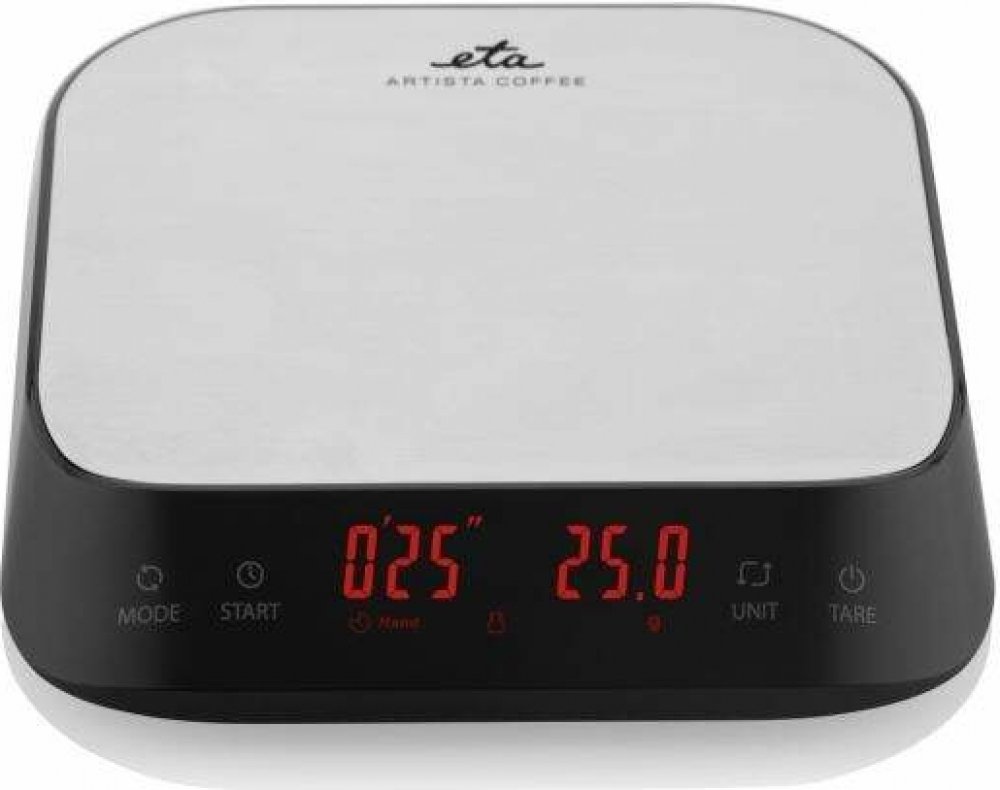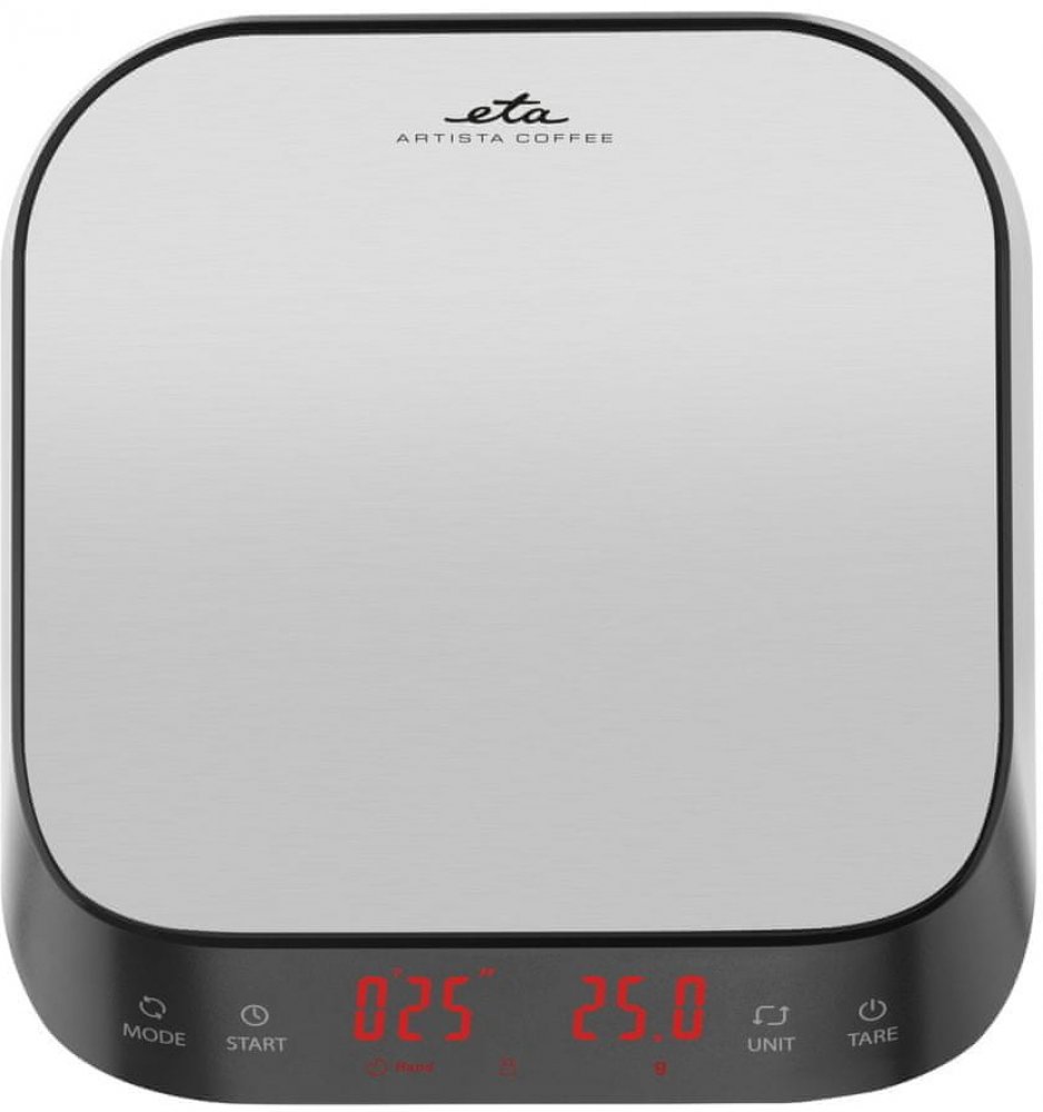Digitální váha ETA Artista Coffee váží s přesností na 0,1 gramu. Po překročení hranice 1 kg se rozlišení zvyšuje na 1 gram, a to až do maximální kapacity 3 kg.