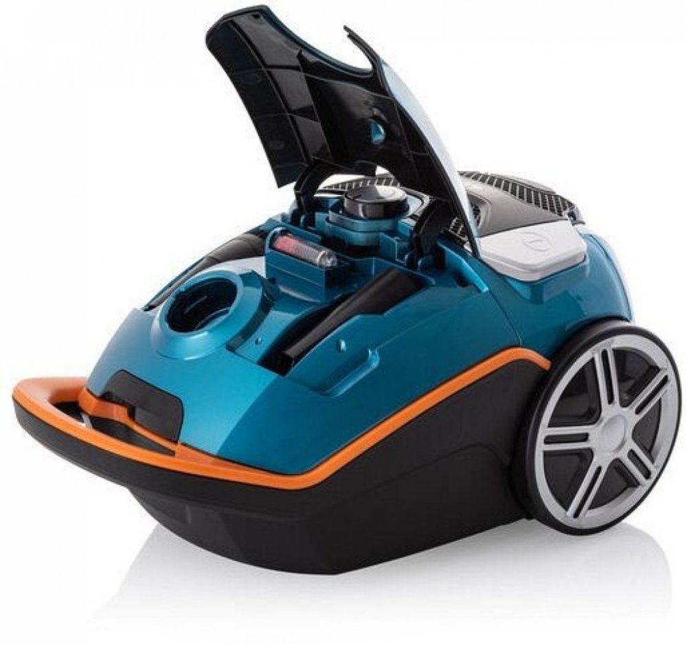 Manipulace s vysavačem je velmi pohodlná díky otočnému kolečku o 360 stupňů, jenž umožní pohyb všemi směry. Měkčená pojezdová kolečka jsou šetrná k hladkým podlahám, tudíž si kolečky nezničíte a nepoškrábete podlahu.