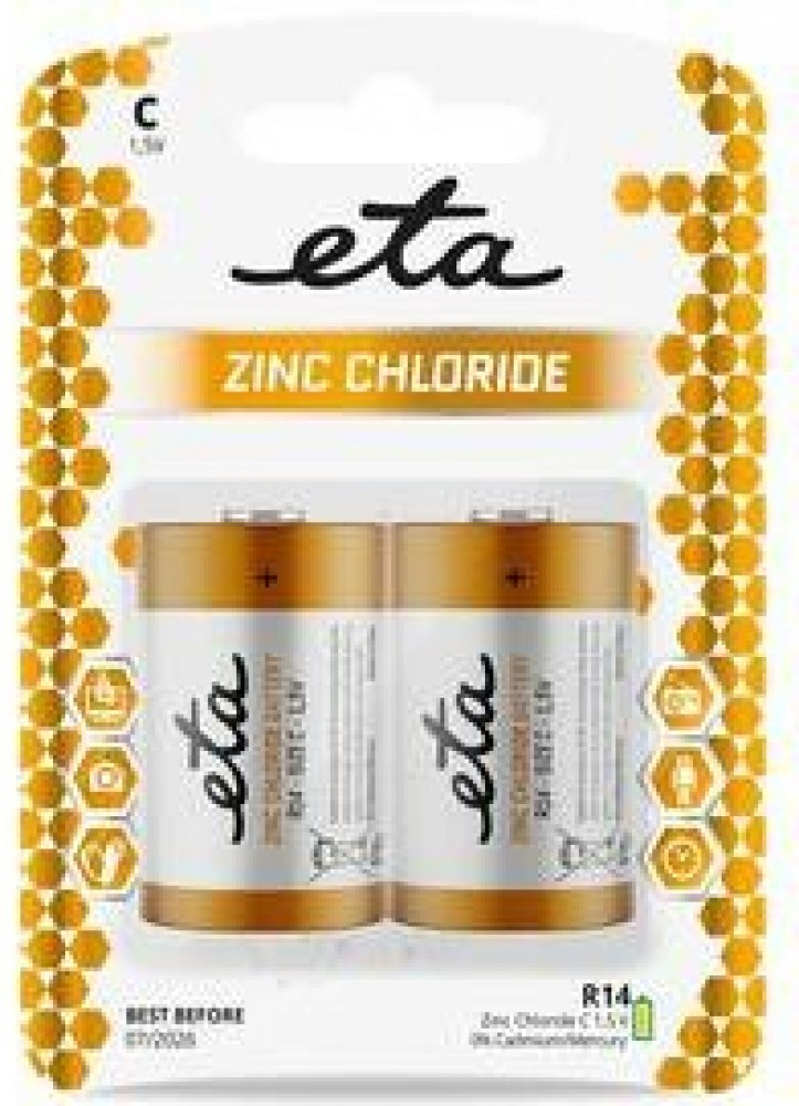 baterie C (LR14) • nenabíjecí • napětí 1,5 V • kapacita: 1 210 mAh • zinkochloridové • vhodné do svítilen, hodin, hraček, stolních rádií, CD přehrávačů a dalších zařízení • 2 ks v balení