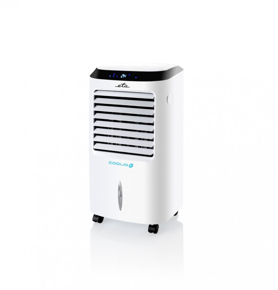Ochlazovač vzduchu 4 v 1 Coolio ETA056890000 s příkonem 65 W vzduch nejen ochlazuje, ale také zvlhčuje, pročišťuje a funguje jako klasický ventilátor na principu odpařování vody bez přítomnosti jakékoli chemie.