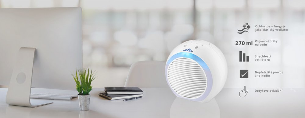 Ochlazovač ETA Coolio Mini navíc vzduch nejen ochlazuje, ale i zvlhčuje.