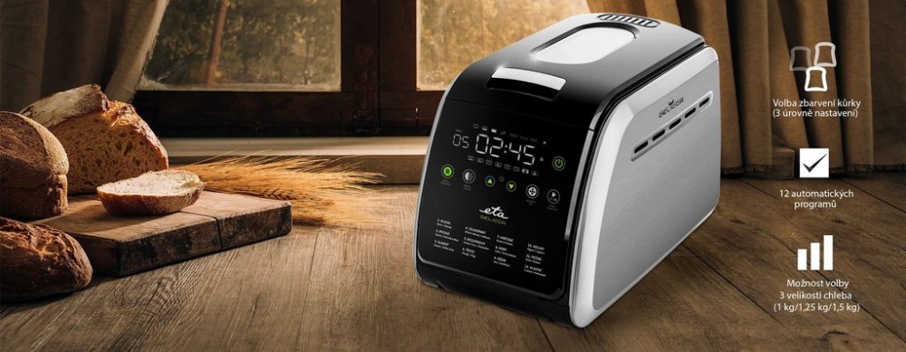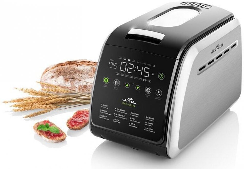 Plně automatická domácí pekárna o příkonu 850 W s 12 přednastavenými programy pro chléb, buchty, ale i výrobu jogurtu nebo džemu, se stane nepostradatelným pomocníkem ve vaší domácnosti. Domácí pekárna ETA Delicca II je přebornicí v pečení domácího chleba, a to i v celozrnných či bezlepkových variantách. Přesně totiž ví, co chléb ke své dokonalosti potřebuje, aniž by přitom vyžadovala vaši neustálou asistenci. Příprava chleba v pekárně ETA Delicca II je plně automatická – zahrnuje předehřev, hnětení, odpočinek, dostatečné kynutí, kvalitní pečení a následné udržování teploty. To vše bez nutnosti vašeho zásahu. Pokud však chcete mít všechno pod kontrolou, pekárna ETA Delicca II se vám ráda přizpůsobí. Stačí zvolit program VLASTNÍ, který umožňuje individuální nastavení jednotlivých fází přípravy chleba. Můžete si tak zvolit požadovanou velikost chleba (1 kg / 1,25 kg / 1,5 kg) a vybrat si ze 3 úrovní zbarvení kůrky. Praktickou funkcí je také odložený start, který vám umožní dokonalé načasování – čerstvý a křupavý chléb tak na vás může čekat po příchodu z práce nebo vám zpříjemnit hektická i víkendová rána.