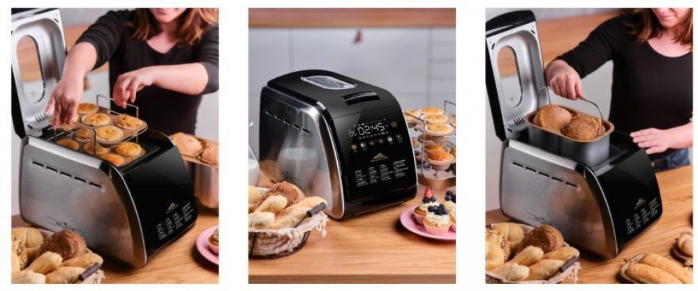 Plně automatická domácí pekárna s 16 přednastavenými programy a speciálními formami na rohlíky, bulky a muffiny.