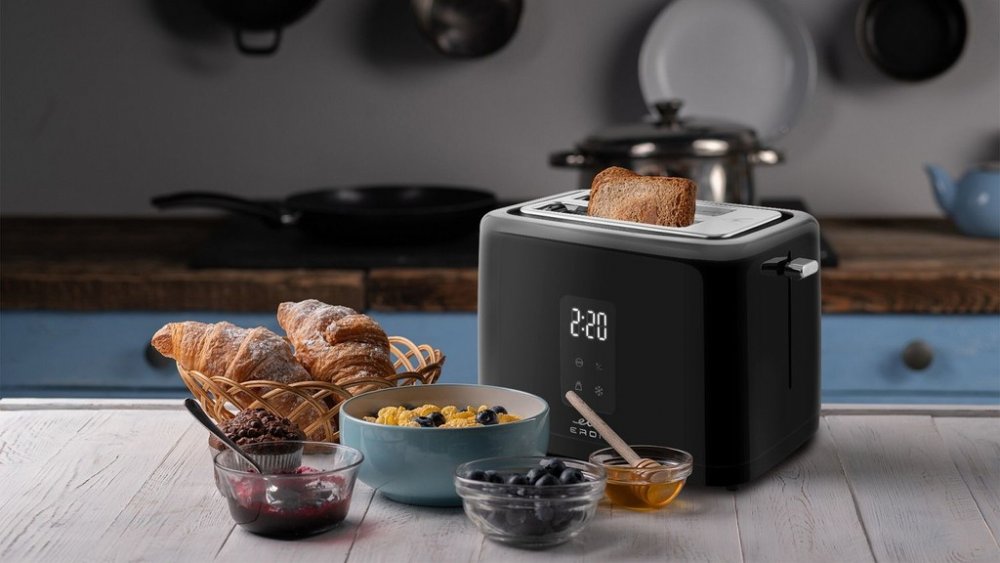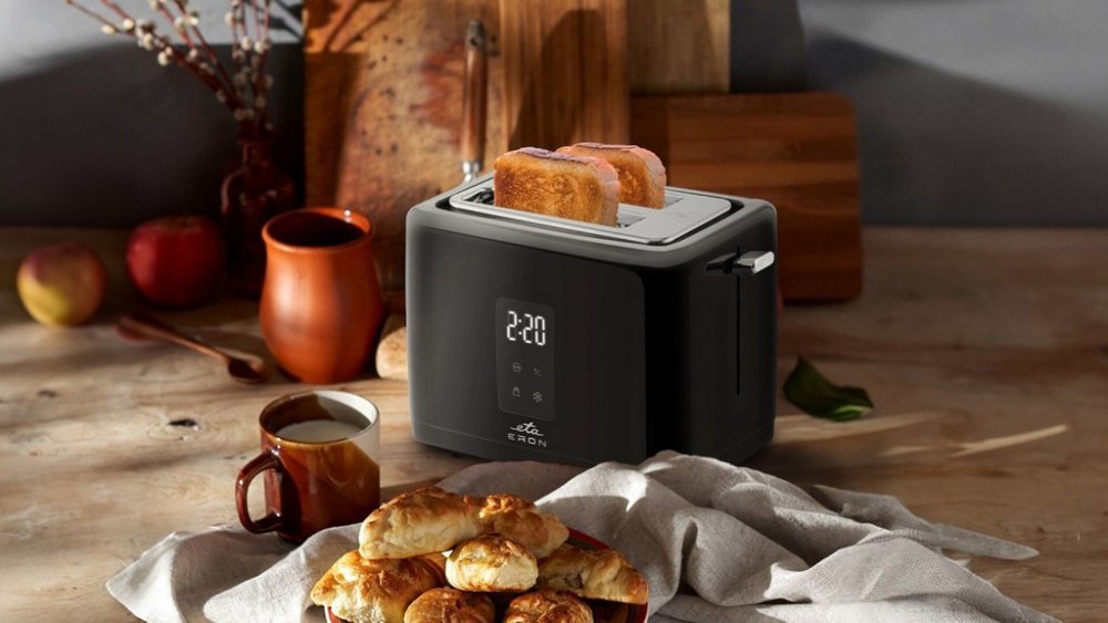 ETA Eron: Pokaždé dokonalé topinky! Hledáte topinkovač, který vám ráno vykouzlí úsměv na tváři? Pak už nehledejte! Elegantní topinkovač ETA Eron si jednoduše zamilujete a jeho nadčasový design s LED displejem bude na vaší kuchyňské lince dělat parádu. Intuitivní ovládání a precizní výsledky Moderní LED displej a dotykové ovládání vás opravdu nadchne. Jednoduše si nastavíte jeden ze 7 stupňů ohřevu – od lehce propečených po křupavě zlatavé, a to rovnou pro 2 kusy topinek. O všem budete mít díky displeji perfektní přehled. Topinky se opékají z obou stran rovnoměrně, můžete tak dát sbohem spáleným okrajům. Pokud máte rádi dlouhá rána a topinky vám náhodou stihnou vychladnout, přijde vám vhod funkce opětovného ohřevu. Topinkovači ETA Eron můžete svěřit i zmražené pečivo, a to díky funkci rozmrazování. Topinkovači nechybí ani praktický nástavec na rozpékání pečiva. Kromě křupavých topinek si tak můžete vychutnat i rozpečené křupavé bagetky nebo italské croissanty.