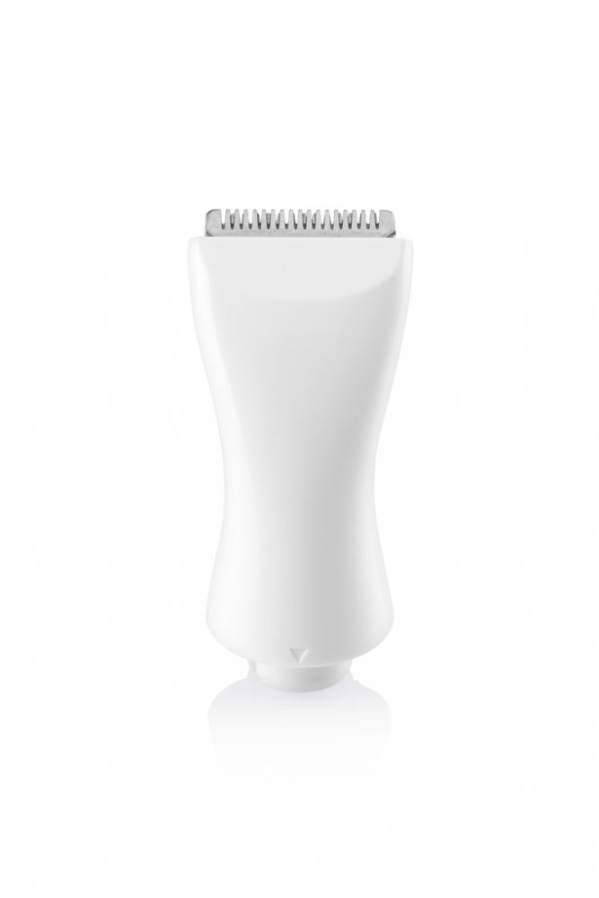 Univerzální stříhací hlava slouží k úpravě chloupků na celém těle, kterou lze opět použít samostatně nebo s nástavcem (délka střihu 3 mm).