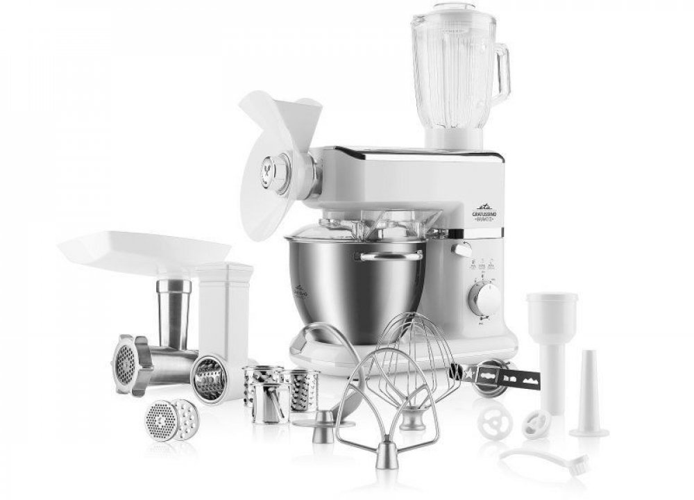 Multifunkční kuchyňský robot se širokou škálou příslušenství se stane nepostradatelným pomocníkem ve vaší domácnosti. Vysoké nároky na výkon plní svým 1000W motorem. Motor se stabilizátorem otáček přizpůsobí svou rychlost tuhosti připravovaného těsta a udržuje nastavené otáčky i při velkém zatížení. Výkyvné rameno umožňuje jednoduchou výměnu nástavců a současně zabrání samovolnému spuštění robota. Umožňuje rychlé sestavení, jednoduché ovládání a snadnou údržbu. Svým moderním designem ozdobí každou kuchyň.