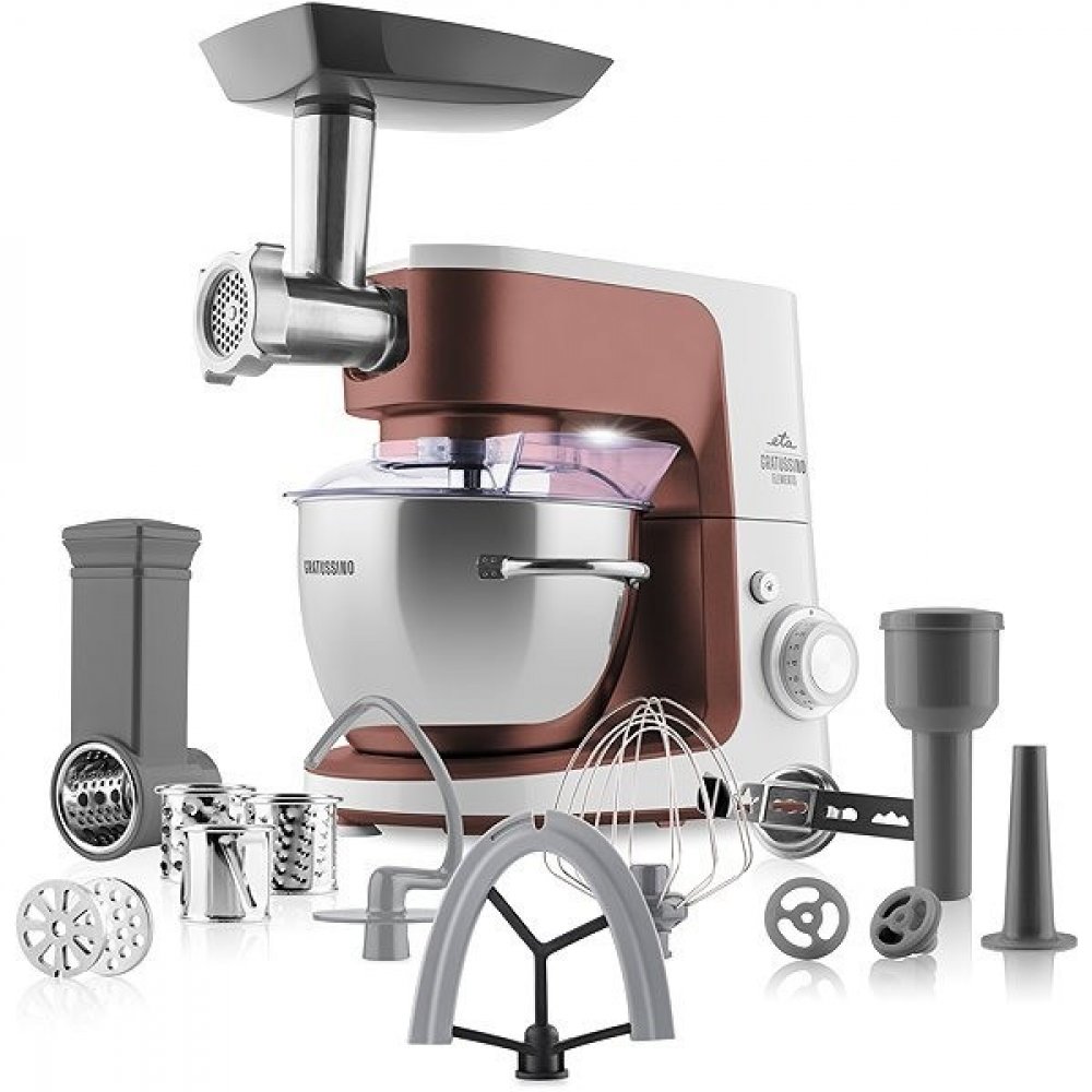 ETA Gratussino III Elements je kuchyňský robot ze stylové edice „Elements“, která vdechuje každé kuchyni osobitý styl. Stejně jako ruční šlehače ETA Lento Elements ze stejné řady přichází i Gratussino III ve třech elementárních barvách – terra (Země), sole (Slunce) a luna (Měsíc) – inspirovaných základními prvky našeho života. Spojuje v sobě nadčasový design, spolehlivost a výbavu, která vás nezklame ani při náročnějším vaření. I když je kuchyňský robot ETA Gratussino III Elements o něco menší než jeho větší bratři, v ničem nezaostává. Výkonný 1200W motor s tichým chodem a kovová převodová kola zajišťují dlouhou životnost a stabilní výkon. Planetární systém míchání rovnoměrně zpracuje všechny suroviny v nerezové míse o objemu 4,5 litru, která je navíc vybavena praktickými držadly a průhledným krytem. Díky plynulé regulaci otáček, stabilizátoru výkonu a funkci PULSE máte plnou kontrolu nad každým receptem. Nechybí ani integrované osvětlení pracovní nádoby a praktická FitForOne metla – pro dokonalé výsledky i při zpracování menšího množství surovin.