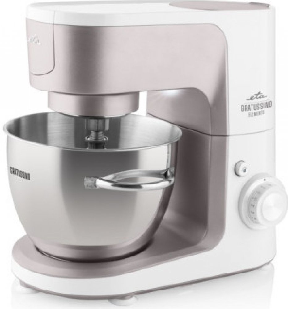 ETA Gratussino III Elements je kuchyňský robot ze stylové edice „Elements“, která vdechuje každé kuchyni osobitý styl. Stejně jako ruční šlehače ETA Lento Elements ze stejné řady přichází i Gratussino III ve třech elementárních barvách – terra (Země), sole (Slunce) a luna (Měsíc) – inspirovaných základními prvky našeho života. Spojuje v sobě nadčasový design, spolehlivost a výbavu, která vás nezklame ani při náročnějším vaření. I když je kuchyňský robot ETA Gratussino III Elements o něco menší než jeho větší bratři, v ničem nezaostává. Výkonný 1200W motor s tichým chodem a kovová převodová kola zajišťují dlouhou životnost a stabilní výkon. Planetární systém míchání rovnoměrně zpracuje všechny suroviny v nerezové míse o objemu 4,5 litru, která je navíc vybavena praktickými držadly a průhledným krytem. Díky plynulé regulaci otáček, stabilizátoru výkonu a funkci PULSE máte plnou kontrolu nad každým receptem. Nechybí ani integrované osvětlení pracovní nádoby a praktická FitForOne metla – pro dokonalé výsledky i při zpracování menšího množství surovin.