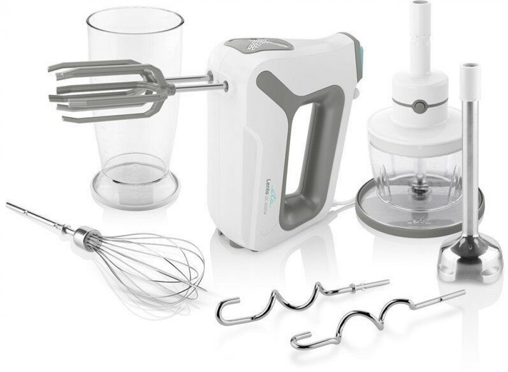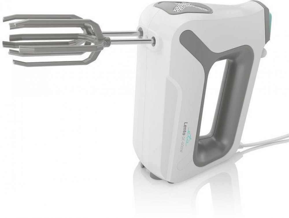 Ruční šlehač Lento v 5 v 1 s příkonem 600 W hněte, šlehá, mixuje, seká a drtí. Je velmi tichý, díky inovované konstrukci šlehacích metel.