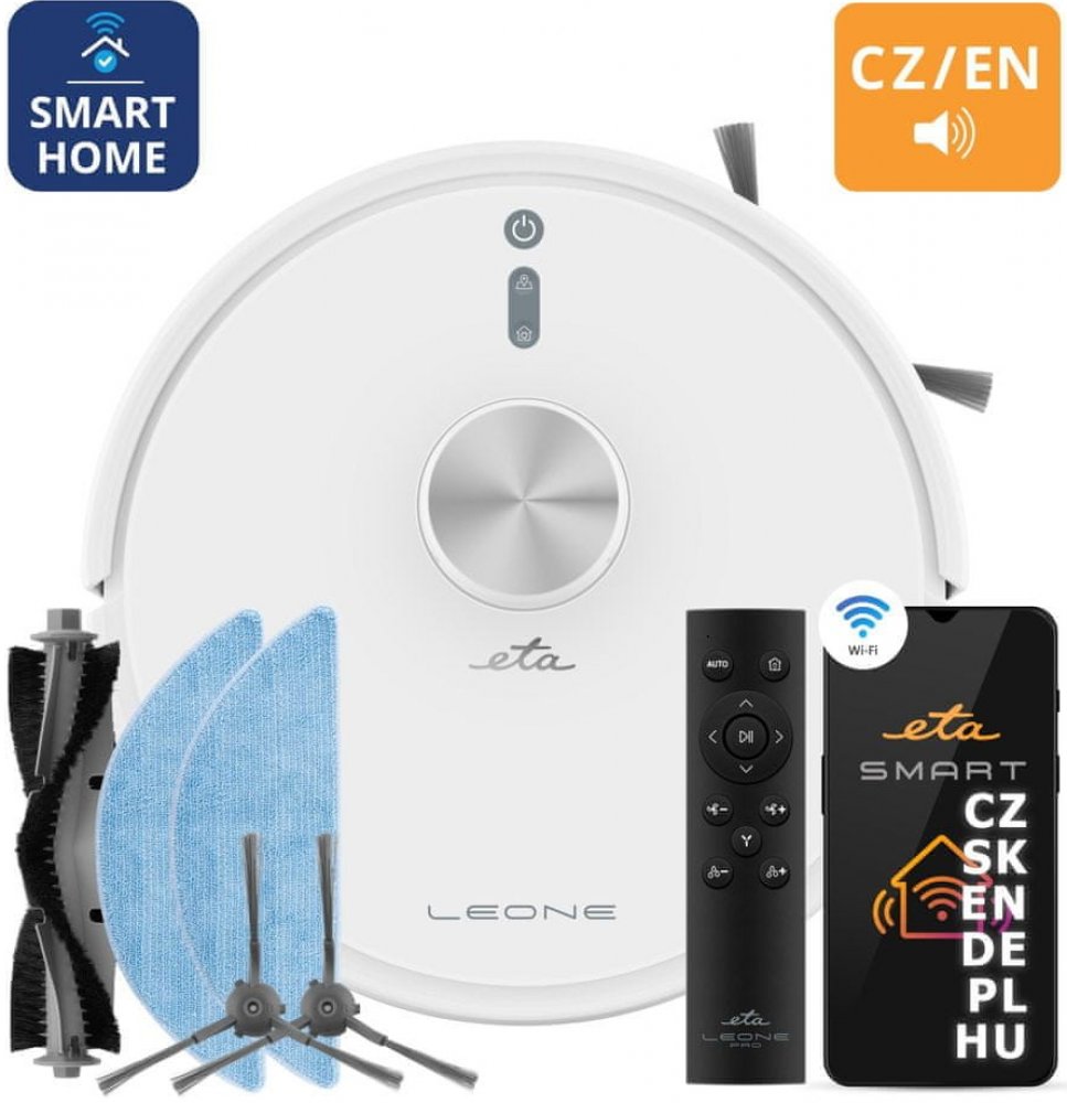Inteligentní robotický vysavač ETA Leone 2 v 1 se o kompletní úklid domácnosti postará za vás. ETA Leone podlahu vysaje a následně i perfektně vytře. Oblasti úklidu můžete vysavači pohodlně určit v aplikaci ETA SMART, ve které naleznete spoustu dalších funkcí a možností vysavače.