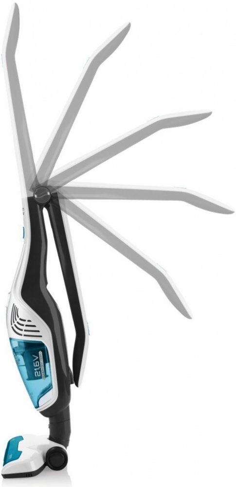 S 21,6 V Li-ion akumulátorem, který udrží vysavač v provozu až 50 minut, zvládnete úklid celého domu naráz. Doba nabíjení akumulátoru je přibližně 5 hodin. Součástí balení je i mopovací nástavec s nádrží o kapacitě 150 ml pro vyčištění podlahy o rozloze až 40 m2. Umývání podlahy bude nyní snadnější než kdy dříve a v porovnání s klasickým mytím podlah zároveň ušetříte nemalé množství vody.