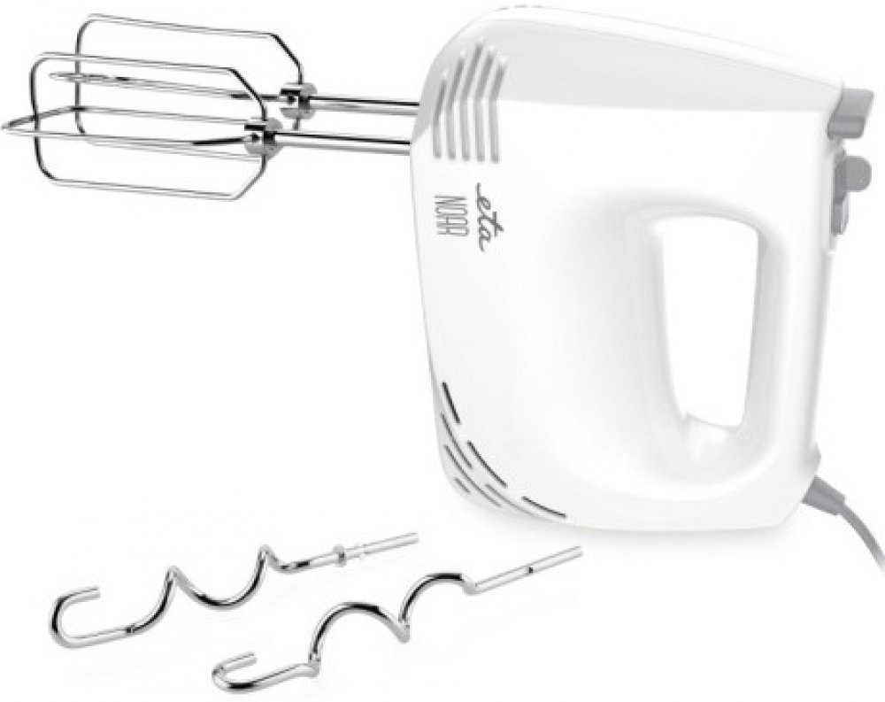 Ruční šlehač ETA Noar II vám bude skvělým parťákem při pečení i vaření. Zabere minimum místa, snadno se ovládá a součástí balení má 2 šlehací metly a 2 hnětací háky. Snadno s ním tak vyšleháte šlehačku, sníh, připravíte těsto na palačinky či dokonalý dortový krém. Poradí si i s bramborou kaší či pomazánkami. Vybrat si můžete z 5 stupňů nastavení rychlosti, což vám zaručuje nastavení podle vašich potřeb. Tomuto šlehači nechybí ani funkce TURBO pro maximální otáčky a tlačítko pro snadné uvolnění metel a háků. V balení tohoto ručního šlehače najdete 2 šlehací metly, které vám pomohou vyšlehat perfektní šlehačku, dortový krém nebo lahodnou bramborou kaši. 2 hnětací háky vám zase pomohou s těstem na bábovku nebo koláč. Všechny háky mají chromovou povrchovou úpravu, která odolá i běžným škrábancům. Ruční šlehač ETA Noar II má ergonomický tvar držadla pro pohodlnou obsluhu. Délka napájecího kabelu je příjemných 130 cm.