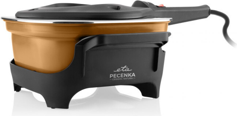 ETA Pečenka přichází v novém, zdravějším kabátě – s pečicí nádobou s nepřilnavým keramickým povrchem, Pečení je úsporné a chutné, ale i šetrnější ke zdraví. Zachovává si současně všechny oblíbené přednosti Pečenky – rychlý ohřev, rovnoměrné pečení a nízkou spotřebu energie. Zvládne vaření, dušení, zapékání i sladké dezerty. Keramický nepřilnavý povrch nové ETA Pečenky Ceramic Natura je ideální volbou pro všechny, kterým záleží na zdraví i chuti. Neobsahuje nežádoucí látky, které se mohou uvolňovat z některých povrchů při jejich poškození. Umožňuje přípravu jídel s minimem tuku – nebo zcela bez něj. Díky tomu se jídlo nepřipéká, nádoba se snadno udržuje a zvládne i časté používání. ETA Pečenka využívá speciálně navržené topné těleso o příkonu pouhých 475 W v horní části víka. Díky tomu dochází k rovnoměrnému rozložení tepla a každá porce je perfektně propečená bez nutnosti jídlo otáčet. Ve srovnání s klasickou troubou spotřebuje až o 80 % méně energie, což se pozitivně odrazí na vašich účtech za elektřinu.