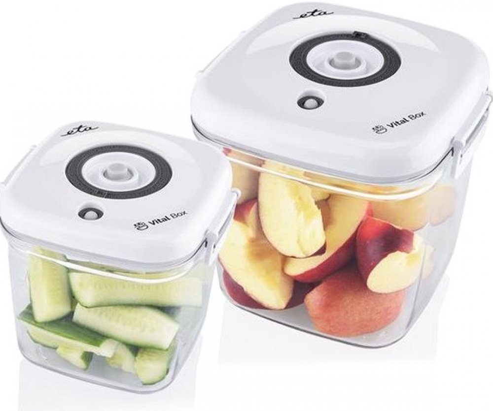 Hledáte způsob jak manipulovat s nejrůznějšími potravinami, ale chcete je udržet čerstvé? Pak by vám určitě neměly v kuchyni chybět dózy ETA Sada vakuovacích boxů Vital Box 0762 90050 . Dózy s objemem až 2,57 l vám poslouží pro uchování připraveného jídla či jakýchkoliv ingrediencí. Materiálem dózy je plast. Plastová dóza nabízí velmi univerzální použití a je lehká. Tato vakuová dóza zachová potra...