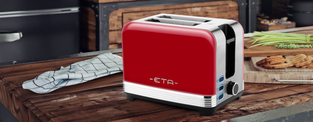 Praktický pomocník do kuchyně v originálním červeném retro stylu. Připravíte si rychle a teplé pokrmy díky příkonu o 930 W. S topinkovačem ETA Storio budete moc připravit dva kusy topinek současně a vybrat si můžete ze sedmi stupňů plynulé regulace.