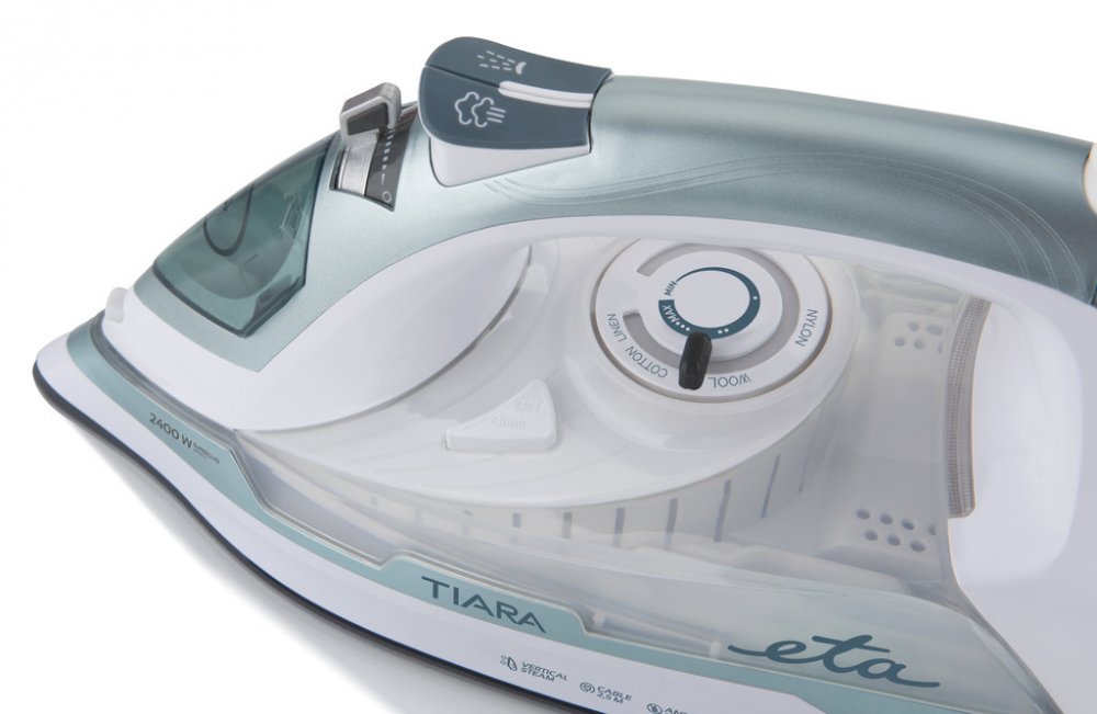 Žehlička je vybavena samočisticí funkcí, tento systém jednoduše a kompletně čistí vnitřní konstrukci žehličky. Samozřejmou funkcí napařovací žehličky Tiara II je systém odvápňování, který zabraňuje usazování vodního kamene a prodlužuje životnost žehličky. ETA Tiara II je vybavena funkcí AUTO – SHUT OFF. Tato funkce vyhodnocuje polohu žehličky a zabezpečuje její automatické odpojení od elektrické sítě v případě převrhnutí či delší doby nečinnosti.