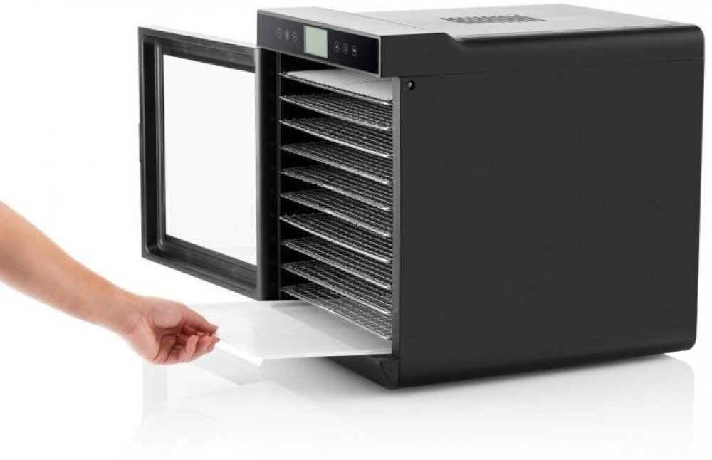A pokud byste přeci jen chtěli zkontrolovat, jak se dobrotám uvnitř daří, umožní vám to průhledná dvířka. Sušičku tak nemusíte zbytečně otevírat, a narušovat tím vnitřní klima.