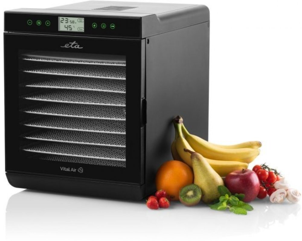 Sušička potravin ETA Vital Air II nabízí šetrný způsob konzervace potravin a přípravy zdravého jídla. V moderním designu skrývá profesionální kvalitu plně přizpůsobenou pohodlnému domácímu použití.