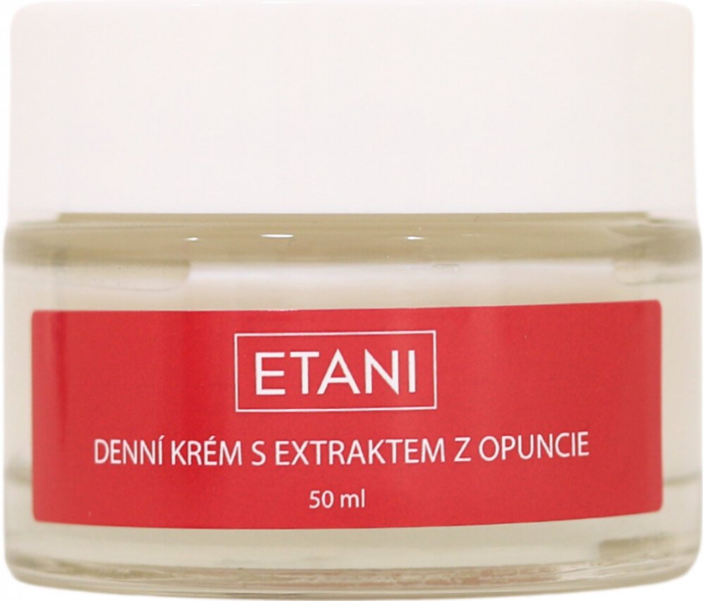 ETANI Denní krém s extraktem z Opuncie je hluboce hydratační, má anti-age účinky, zjemňuje pokožku, dodává pokožce regeneraci. Krém sjednocuje tón pleti a je vhodný i na problematickou pleť a akné. Díky Opunciovému extraktu je mimořádně bohatý na mastné kyseliny a vitamínu E. Krém je lehký, hedvábný, rychle se vstřebávající. Neutralizuje škodlivé volné radikály, redukuje jizvy po zranění, akné, ekzému a lupénce. Pleť zanechá jemnou, vyhlazenou a nemastnou. Díky kyselině hyaluronové dostává pleť potřebou hydrataci, která je důležitá pro zdravou jemnou a svěží pokožku.