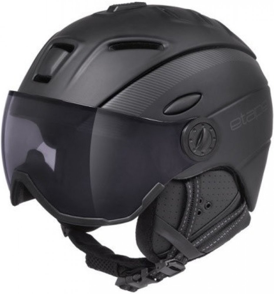 Etape Comp VIP je vybavena odnímatelným fotochromatickým štítem Flex Vision. Tento štít se automaticky přizpůsobuje aktuálním světelným podmínkám v rozsahu filtru kategorie S1 až S3 a poskytuje 100% ochranu proti UV záření. Navíc má zrcadlový efekt, je odolný proti poškrábání a disponuje úpravou proti zamlžení Zero Fog. Díky konstrukci štítu je helma kompatibilní i s dioptrickými brýlemi, což ocení lyžaři s potřebou korekce zraku.