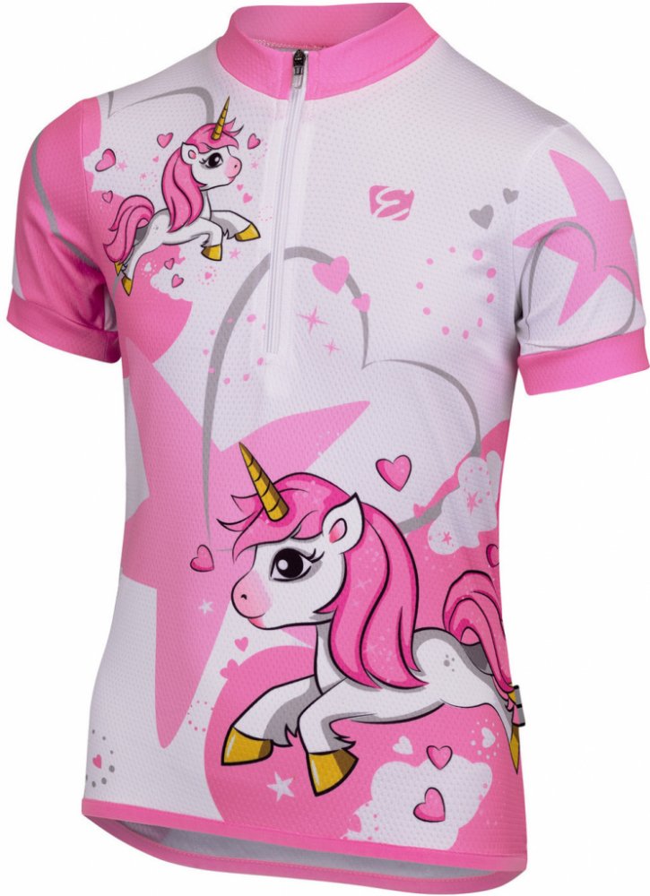 Příjemný dívčí cyklistický dres s motivem jednorožce. Má zip v předu a 3 zadní kapsy, tak jak jste zvyklí u dresů pro dospělé. Micro-cool materiál dobře větrá a zajistí tepelnou pohodu i při delších vyjížďkách na kole. Dětský cyklistický dres s krátkým rukávem Etape Rio růžový