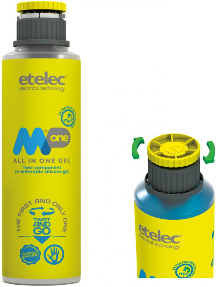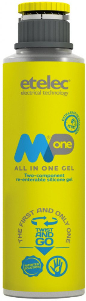 Dvousložkový zalévací gel - ETELEC MPone. Pro výplň a izolaci elektrických spojů. Rychle a jednoduše chrání spoj před nepříznivými přírodními vlivy jako je vlhkost, prach a další nečistoty. Složky gelu "A" i složka gelu "B" jsou obsaženy v jedné láhvy. Po smíchání obou složek gelu je výsledná hmota průhledná s nízkou viskozitou a po vytuhnutí zůstává po celou dobu životnosti spoje rosolovitá. Při samotném vylévání krabičky nebo jiného média krásně zatéká do všech zákoutí. Spoj lze po vytuhnutí jednoduše rozebrat. Gel je šetrný k životnímu prostředí. Navíc nemá žadnou expiraci - můžete jej uchovávat/skladovat mít jej k použití kdykoliv bude potřeba. Dielektrická pevnost 25,5 kV/mm.Technické parametry: Celkový objem gelu v balení: 0,6 litru = 0,6 dm3 = 0,0006 m3