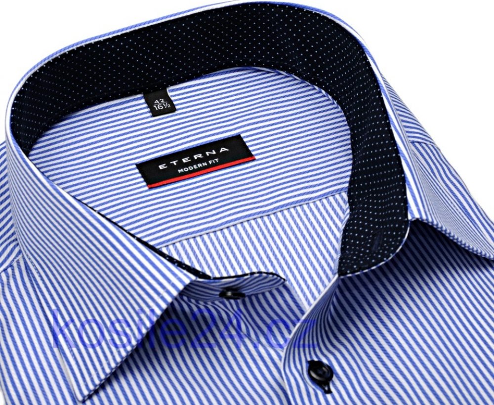 Eterna Modern Fit Twill košile s modrým proužkem s vnitřním límcem a manžetou