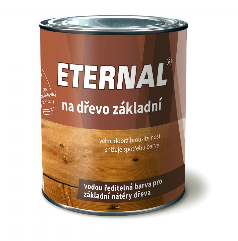 ETERNAL na dřevo základní je určen k základním nátěrům dřevěných výrobků pro interiér i exteriér např. dveře, okna, ploty, dále k nátěrům dřevotřískových a dřevovláknitých desek. ETERNAL na dřevo základní zvyšuje přilnavost mezi podkladem a vrchním nátěrem, vyplňuje póry a vyrovnává povrchové nerovnosti podkladu, omezuje pronikání barevných skvrn z podkladu a zlepšuje tak vlastnosti a vzhled výsledné povrchové úpravy.