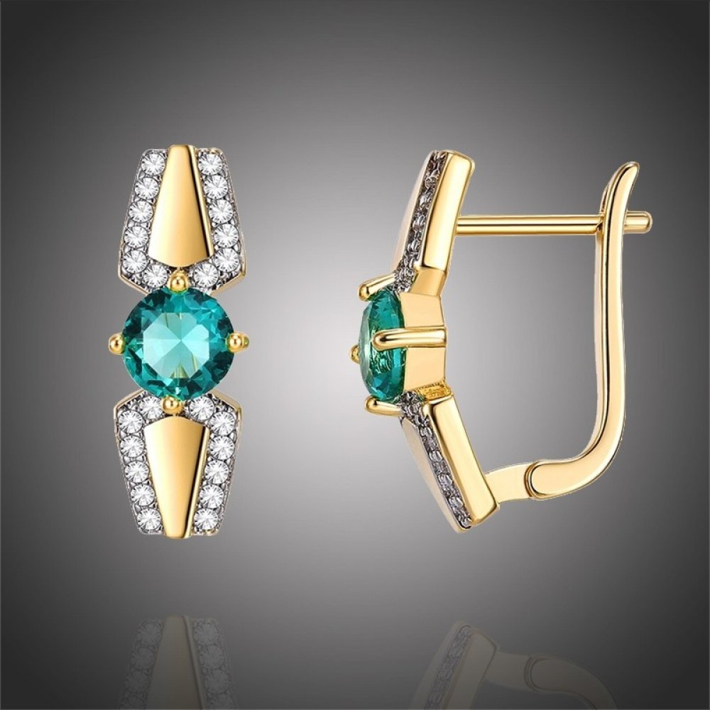 Podtrhněte svou krásu elegantními pozlacenými náušnicemi Cecelia, zdobenými čirými zirkony a zelenými krystaly Swarovski. Nechte se unášet na vlně luxusu a elegance. S tímto nádherným šperkem rozzáříte taneční parket a budete se cítit sebevědomě a sexy. Náušnice podnítí vaši smyslnost a zajistí jednoduchou a přirozenou eleganci.