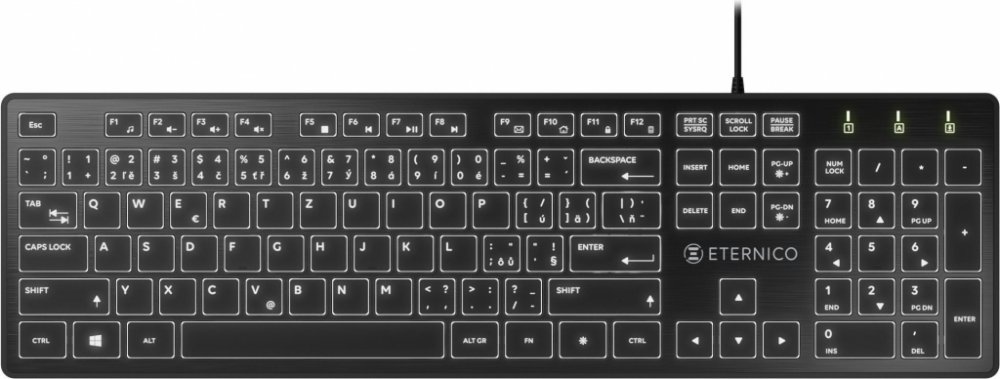 Tichá klávesnices podsvícenímHledáte ke svému počítači kvalitní, pohodlnou, a především spolehlivou klávesnici s CZ / SK uspořádáním, která nabízí i něco navíc? Eternico Wired KD2001W splní vaše požadavky do posledního detailu. Tato klávesnice bez problémů obstojí i v tvrdé konkurenci, nabízí totiž tiché membránové klávesy, 12 multimediálních kláves, funkci anti-ghosting pro 6 kláves či efektní bílé podsvícení s možností regulace intenzity nebo úplného vypnutí. Klávesnice Eternico Wired KD2001W je tak skvělou volbou domů i do kanceláře.12 MULTIMEDIÁLNÍCHklávesCZ A SKlokalizaceBÍLÉpodsvíceníEternico je inovátor v dostupné elektroniceZákazník na 1. místěS láskou k planetě100% bezpečnéKlávesnice nejen pro komfortní psaníPsaní všemi deseti prsty bez nutnosti dívání se na klávesy usnadní speciální drážky na klávesách "F" a "J". Díky funkci anti-ghosting je klávesnice vhodná i pro velmi nenáročné hraní. Eternico Wired KD2001W je také vybavena protiskluzovými gumovými podložkami, které zajišťují stabilitu...