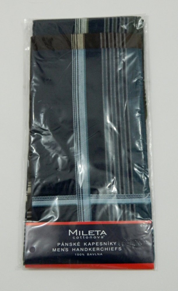 Pánské kvalitní, sací kapesníky ze 100% bavlny od firmy Mileta, v balíčku 6ks, velikost jednoho kapesníku 39,5x39,5. Dostupnost ve světlé variantě a tmavé variantě. Zasíláme světlé nebo tmavé varianty, pokud si budete přát konkrétní variantu, prosím psát do poznámky.