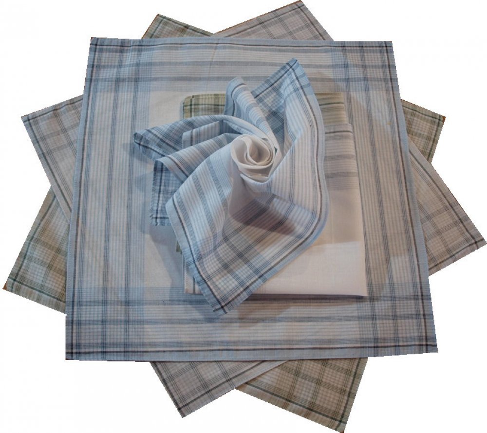 Pánské bavlněné kapesníky jsou baleny po šesti kusech. Kapesníky jsou vyrobeny ze 100% bavlny a rozměr kapesníků je klasický cca 40x40cm.