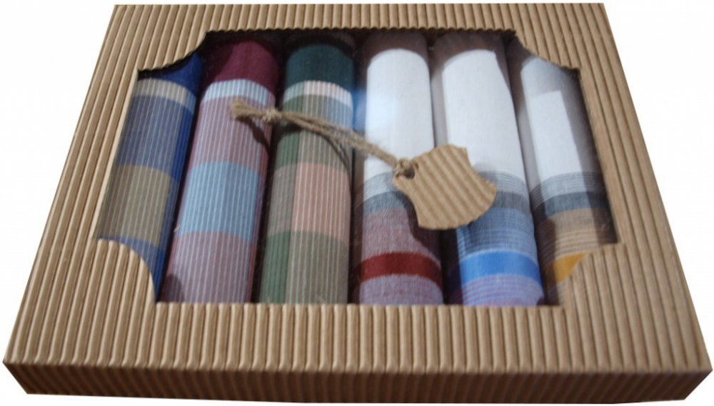 Pánské kapesníky klasické české výroby jsou balené v dárkové krabičce. Balení obsahuje 6 ks. Kapesníky jsou klasické pánské velikosti cca 40cm x 40cm.