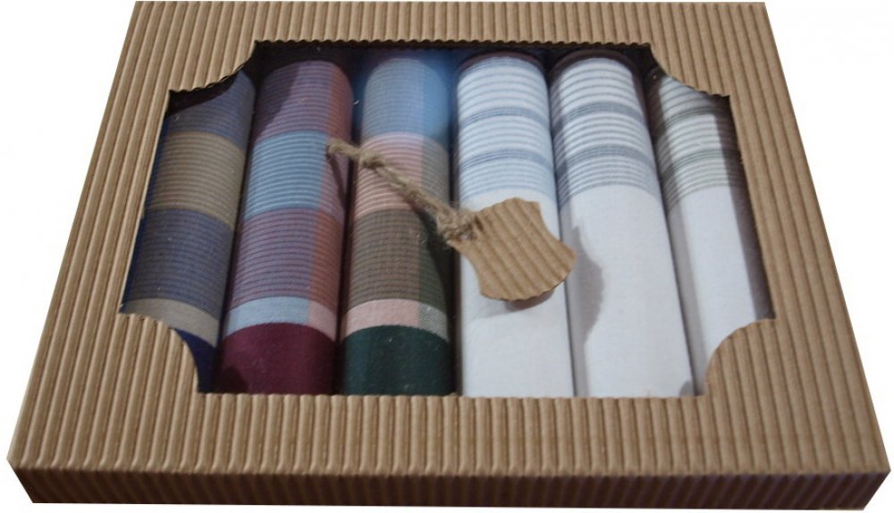 Pánské kapesníky klasické české výroby jsou balené v dárkové krabičce. Balení obsahuje 6 ks. Kapesníky jsou klasické pánské velikosti cca 40cm x 40cm.