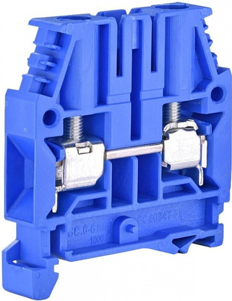 Řadová svorka na DIN lištu umožňuje spolehlivé spojení dvou nebo více vodičů, přičemž v rozvodné skříni je zachován maximální řád.Popis: ESC-CBC.6BNázev třídy: řadová svorkaUn (V): 1000Typ: ES šroubové svorkovniceJmenovité impulsní výdržné napětí (kV): 12 kVTyp uchycení: DIN lišta (zhlaví lišty) 35 mmBarva: modráJmenovitý průřez (mm2): 6Jmenovitý průřez pro max. proud (mm2): 41Max. proud s max. průřezem (mm2): 64Připojitelný průřez plného vodiče (mm2): 0,2 - 10Křížové spojení: anoKoncová část nutná: ano
