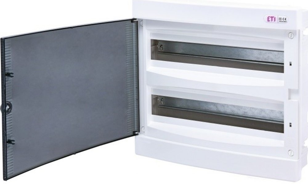 001101083 ECM 2x18PT Rozvodnice plastová pod omítku, průhledná dvířka, IP40, 2Ř, 2x18M, ETI