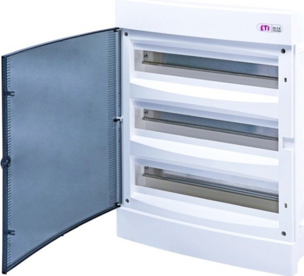 001101047 ECM 3x18PT Rozvodnice plastová pod omítku, průhledná dvířka, IP40, 3Ř, 3x18M, ETI