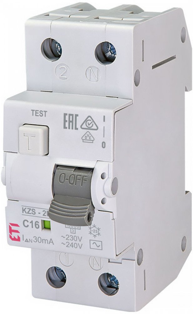Ochranná známka - ETI. Model- KZS-2M / 002173124. Poláky- 2P. Napětí- 230 V. Proud- 16 A. Odtokový proud- 30 mA. Typ ochrany proti úniku - Střídavý proud (AC). Instalace - na DIN lištu. Stupeň krytí (IP) - IP20. Vlastnosti - s automatickým spínačem (RCBO). Další informace - Počet fází / pólů 2P. Jistič Ano. Vypínací křivka C. Funkce uvolnění, kA 10 kA. Odtokový proud, mA 30 mA. Šířka, cm 35 mm. Na...