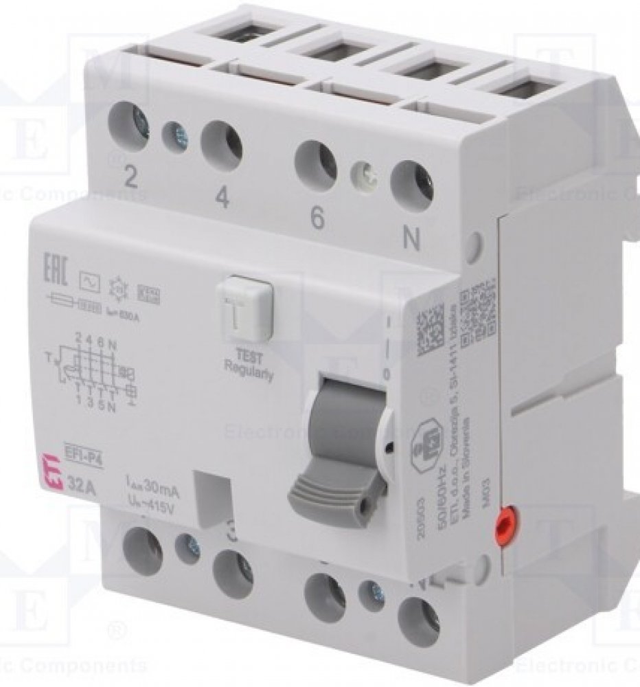 Proudový chránič; Ijmen: 32A; Iroz: 30mA; Póly: 4; 230V,400V; IP20
