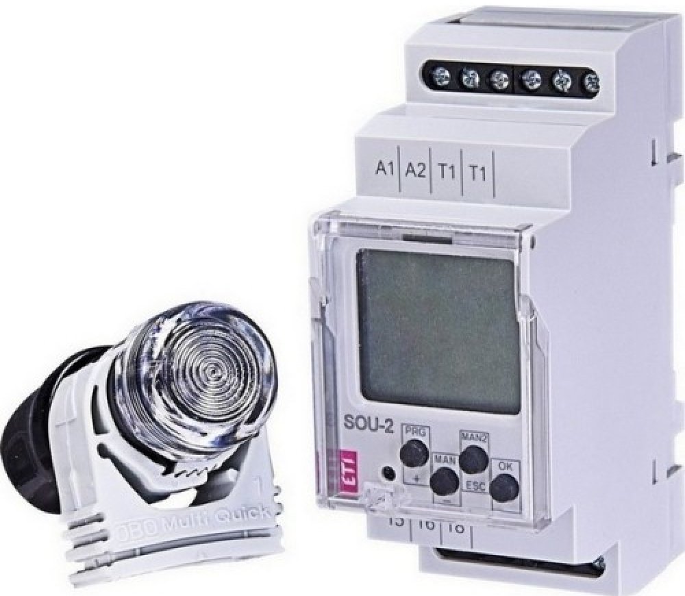 Výhody produktu: 2-MODUL, montáž na DIN lištu napájecí napětí: AC 230 V nastavitelná úroveň intenzity světla 1-50000 lx slouží pro ovládání osvětlení na základě intenzity okolního světla a reálného času (kombinace SOU-1 a spínacích hodin SHT-1 v jednom přístroji) výhodou reálného času je blokování funkce soumrakového spínače v době, kdy se jeví sepnuté osvětlení jako neekonomické (noční hodiny, ví...