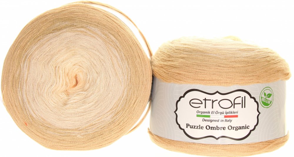 Příze Etrofil Puzzle Ombre Organic je pletací i háčkovací příze složená ze tří nitek v návinu 1450 metrů a gramáží 250g. Složená ze 100% organické bavlny, ručně navazovaná, barvená v ombre stylu. Je vhodná především na výrobu šátků, letních šatů, tunik a letních dek. Nitky jsou jen lehce stočené, výsledný projekt tak bude nadýchaný, vzdušný, velmi příjemný na nošení.