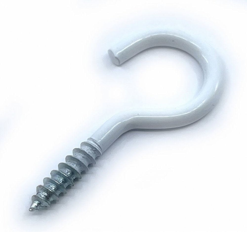 Hák s vrutem je spojovací materiál využitelný při různých projektech. Hák s vrutem je vhodný do dřeva, plastu či hmoždinky. Má široké uplatnění v domácnosti, zahradě, dílně nebo ve stavebním průmyslu. Tento hák je povrchově upravený bílým komaxitem.