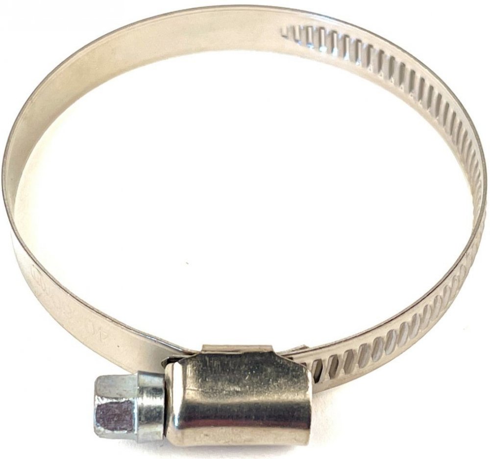 Nerezová hadicová spona s pozinkovanou maticí. Pásek se šířkou 9 mm je vyroben z nerezové oceli a tělo spony je z oceli.