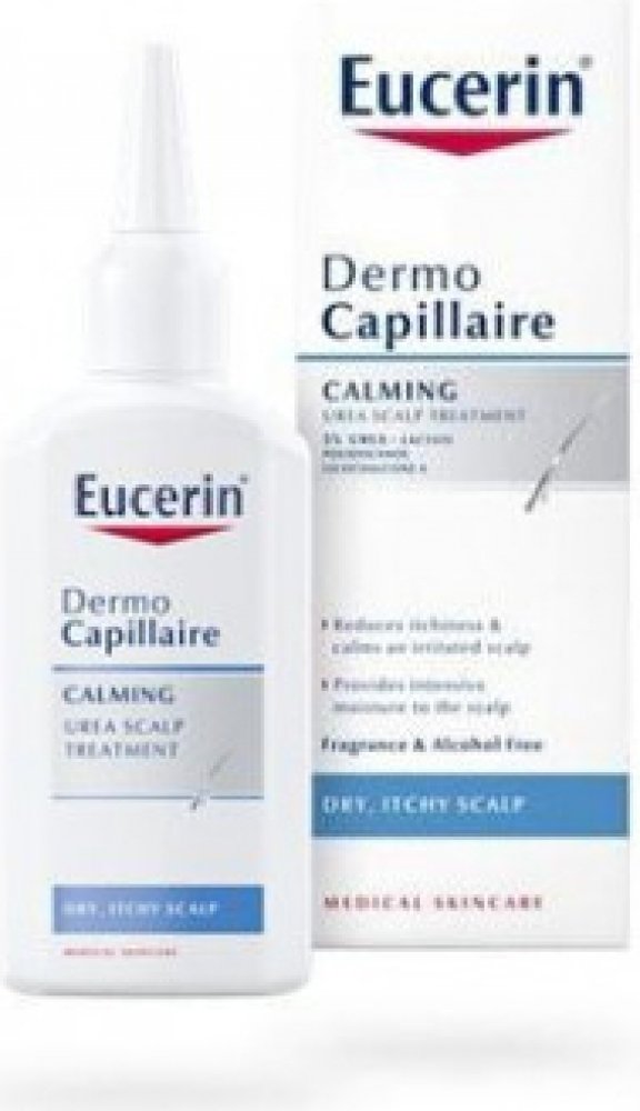 Ano. Eucerin DermoCapillaire Zklidňující tonikum s ureou je ideální jako doplňková péče při léčbě těchto kožních problémů. Obsahuje dvě speciální hydratační složky – ureu a laktát a také uklidňující polidokanol a licochalcon A, které pomáhají zmírňovat svědění a podráždění.